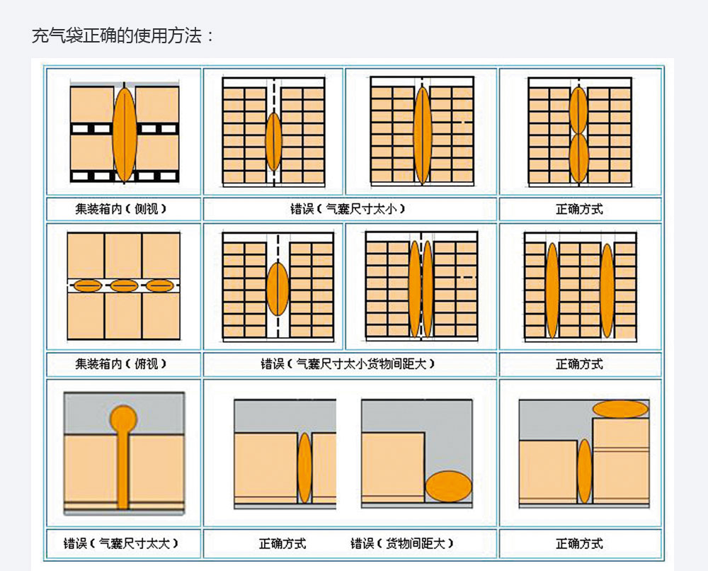 集裝箱充氣袋是一種創新和簡易的運輸保護工具,采用PP及PE覆蓋的牛皮紙作為堅韌的外袋和氣密性很高的內袋并裝配氣閥加工而成,內袋是要由PP或PE為主的5層拱劑膜制成。